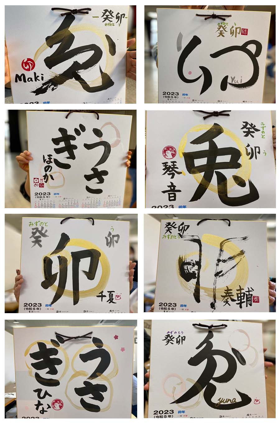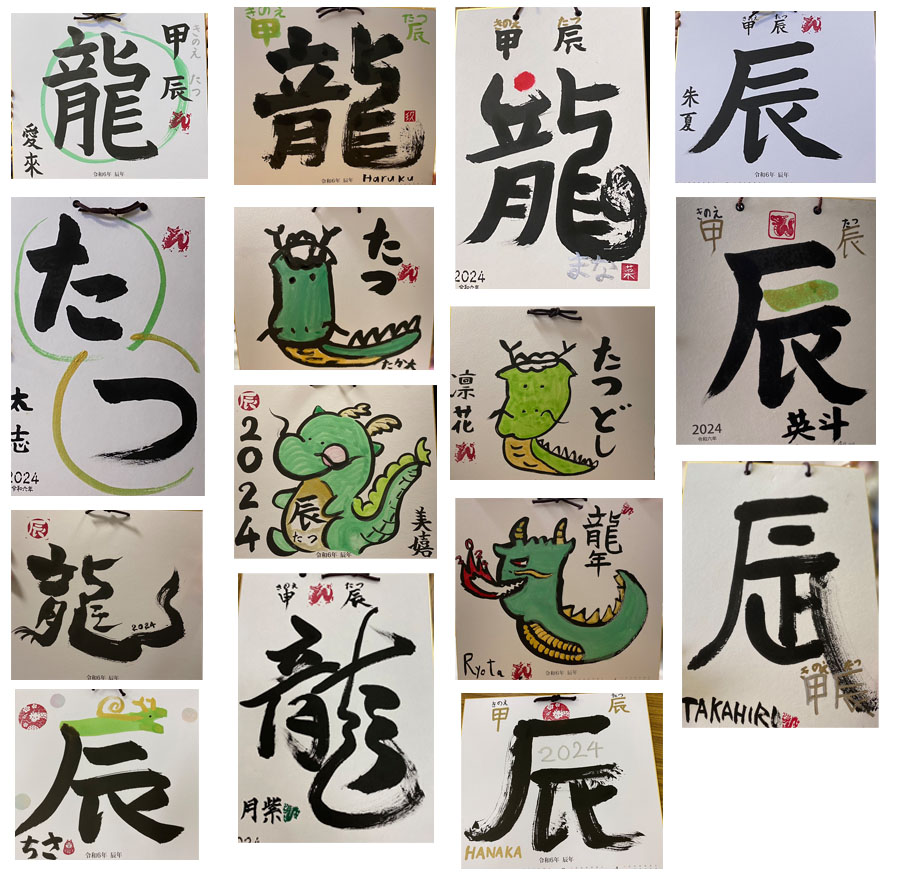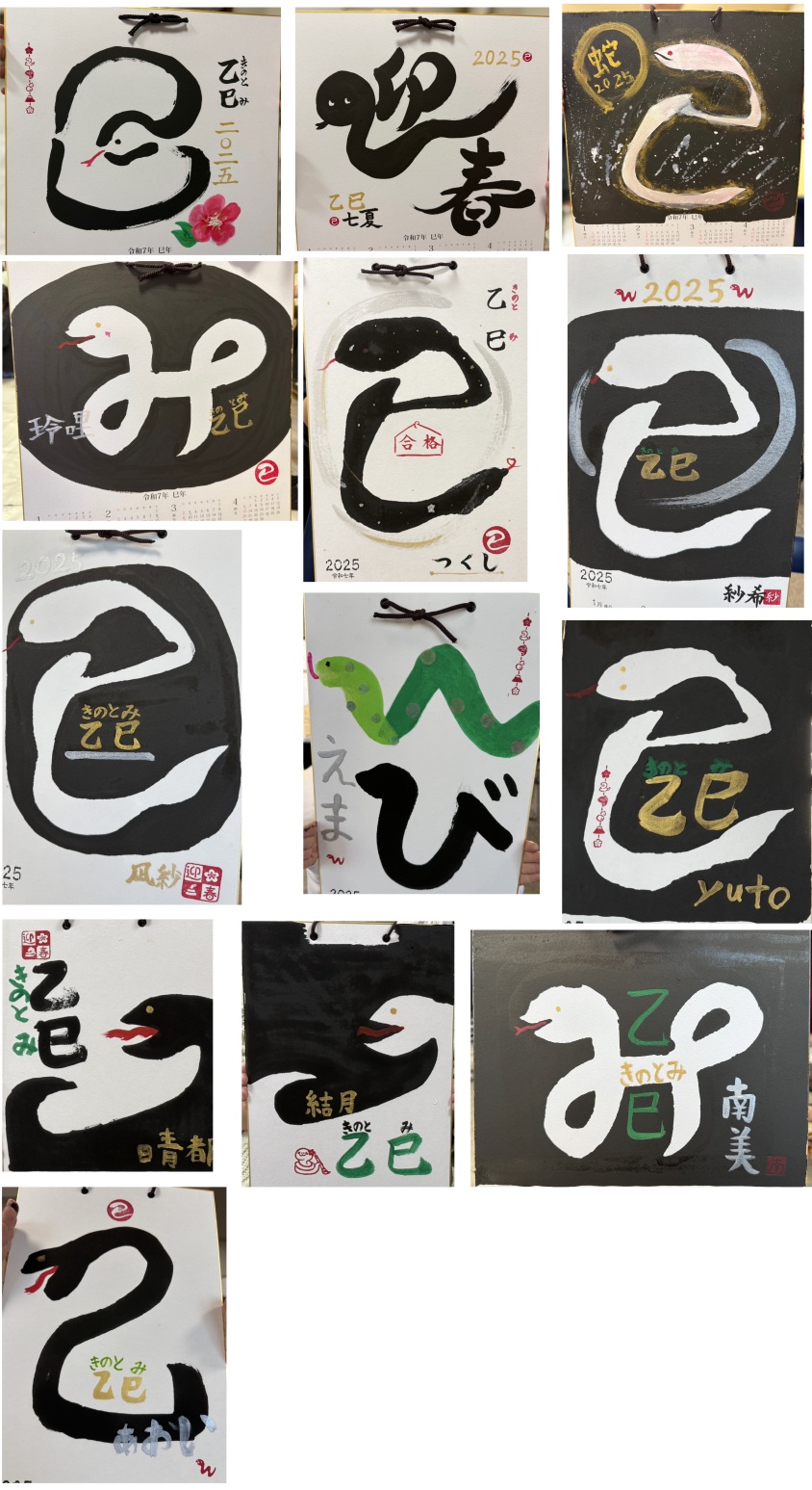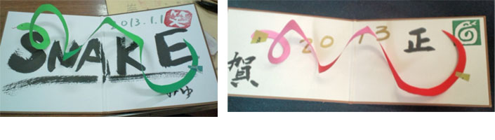 楽しい凧・年賀状、屏風カード、どれも個性あふれる作品が出来ました