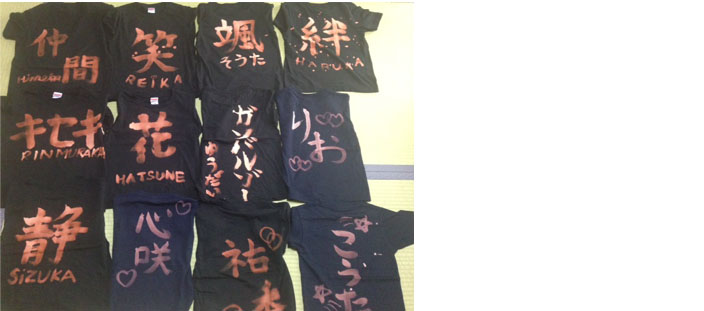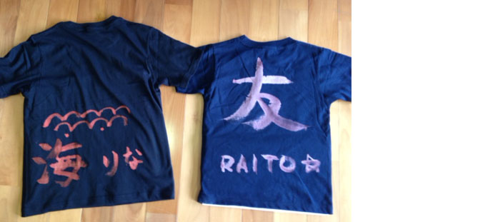 無地のTシャツ・ズボン・ハンカチ・布バック等洗濯しても落ちない顔料で文字を書きます。