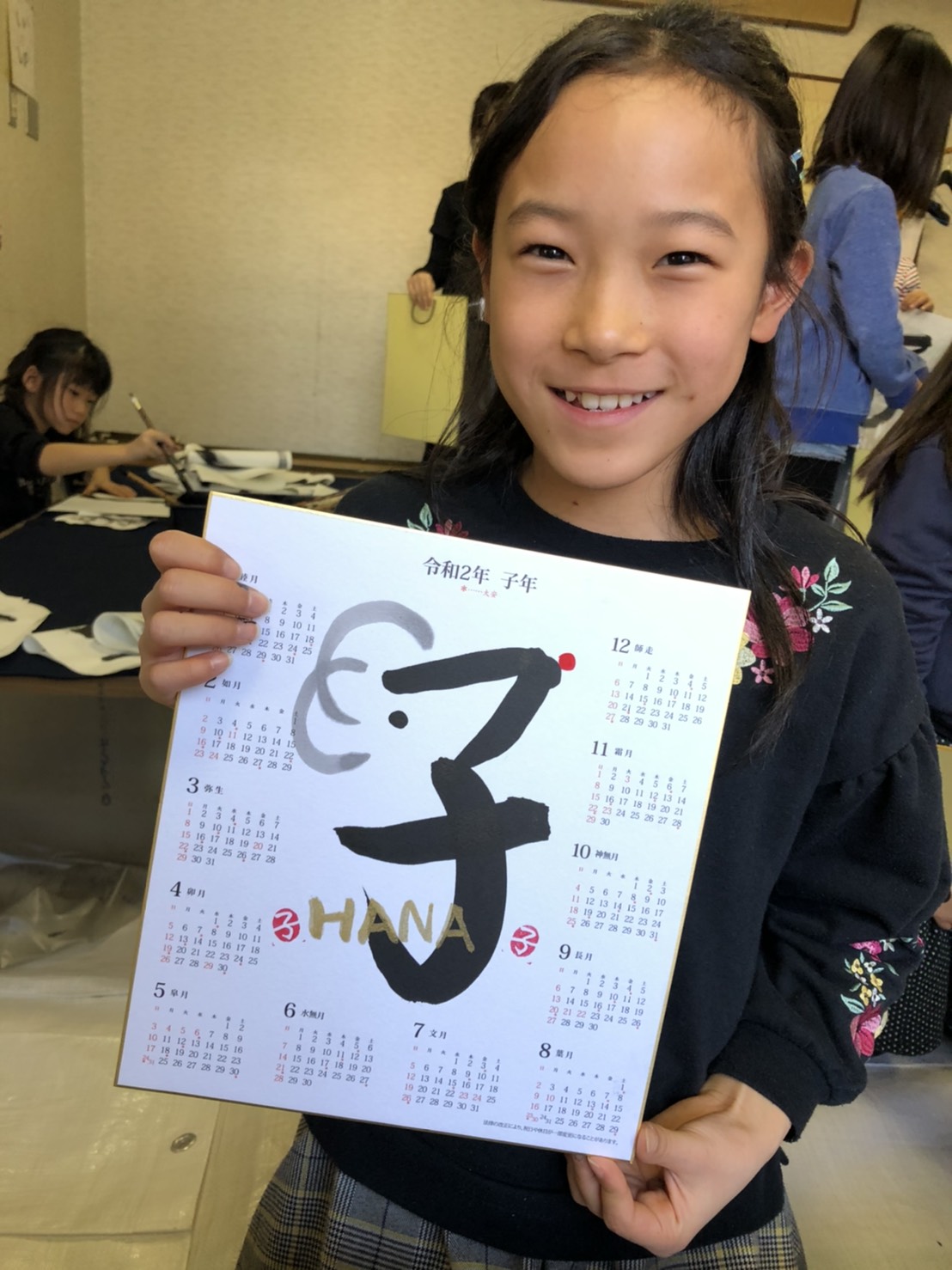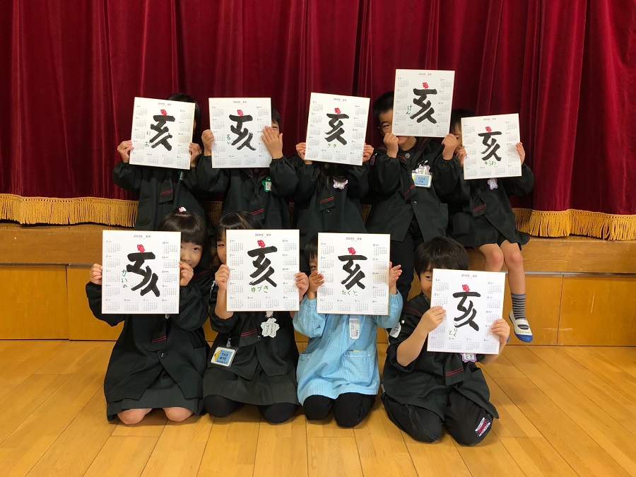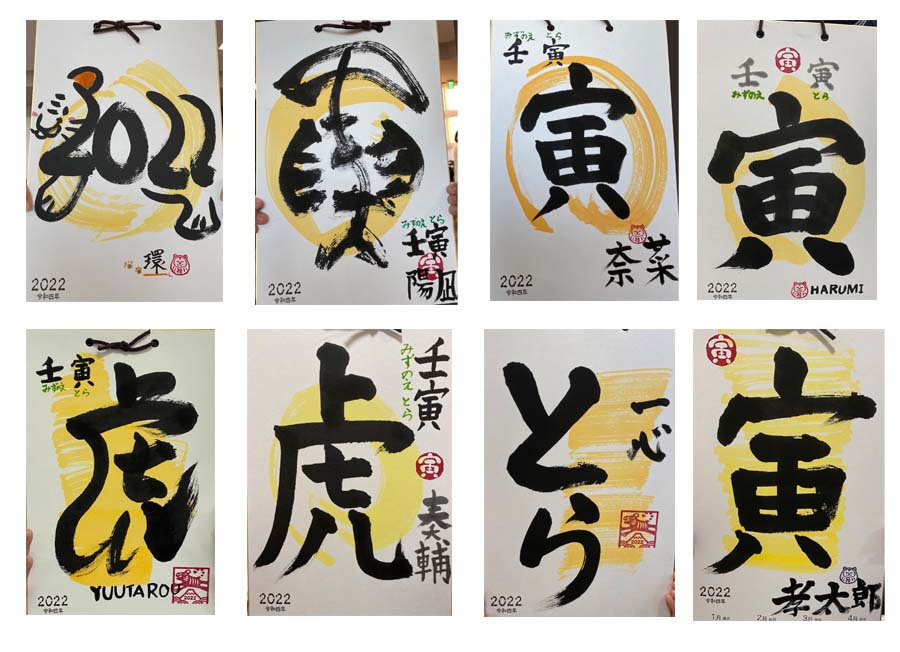 真剣なまなざしの顔写真+ハガキに漢字1文字を描き額仕立てとなります。